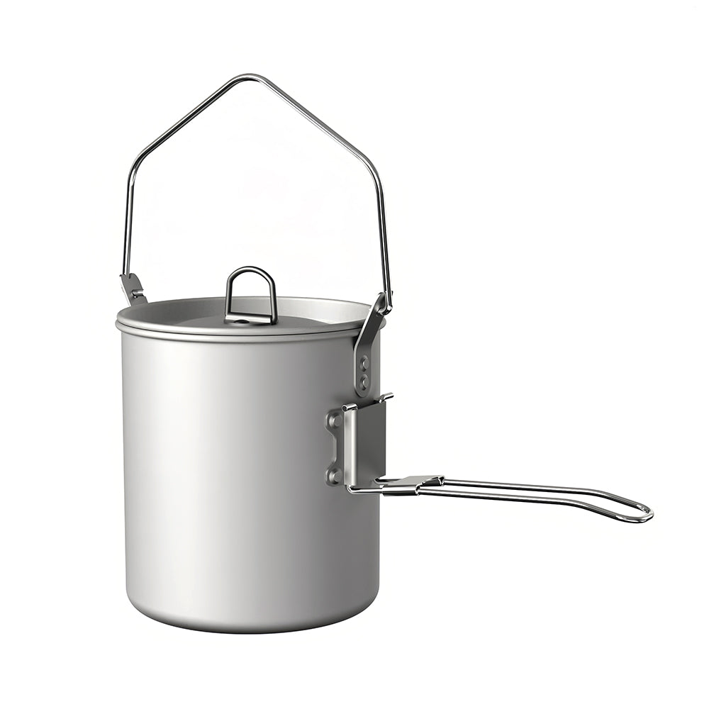 Ultralight 5.4oz (153g) aluminum camping pot with detachable self-locking handle. Compact 0.9L capacity folds flat for backpack storage. Premium rust-proof aluminum works on campfires/stoves. Perfect for backpacking, bushcraft, and emergency kits.